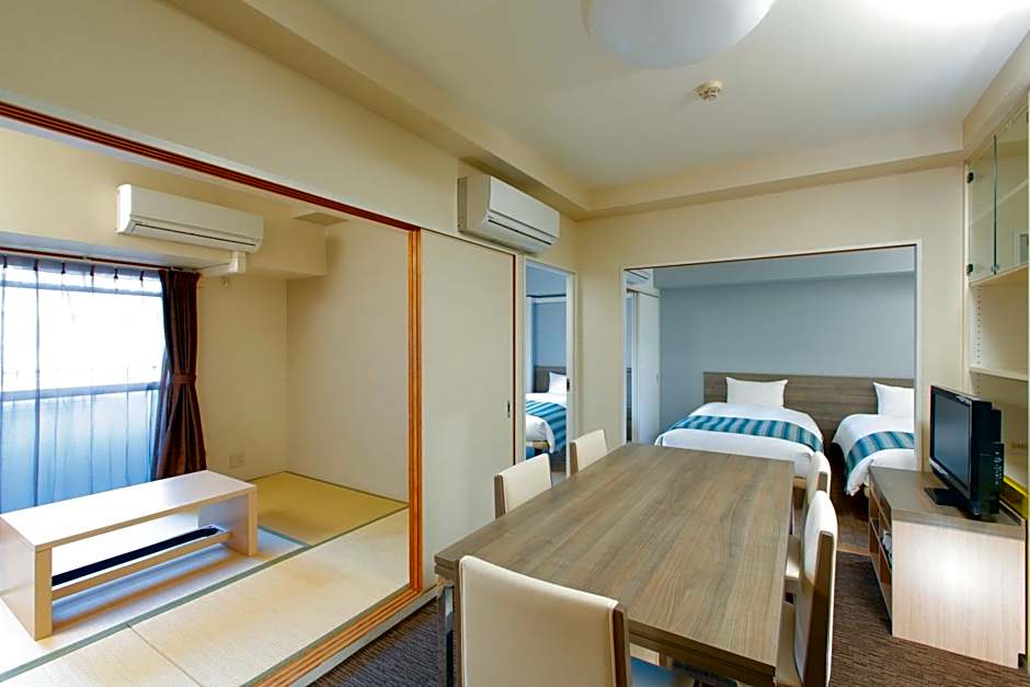 Air-conditioned studio featuring a kitchenette with kitchenware, a balcony and a cable TV with video-on-demand movies available for purchase. The private bathroom is furnished with amenities. A washing machine is available in the room for guest's convenience. This room includes 2 Western bed rooms and 1 Japanese-style room.